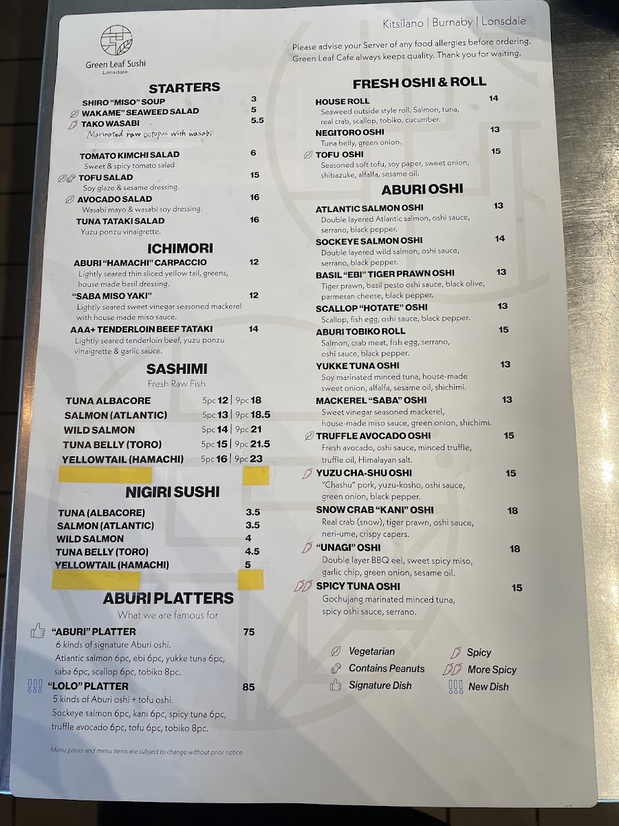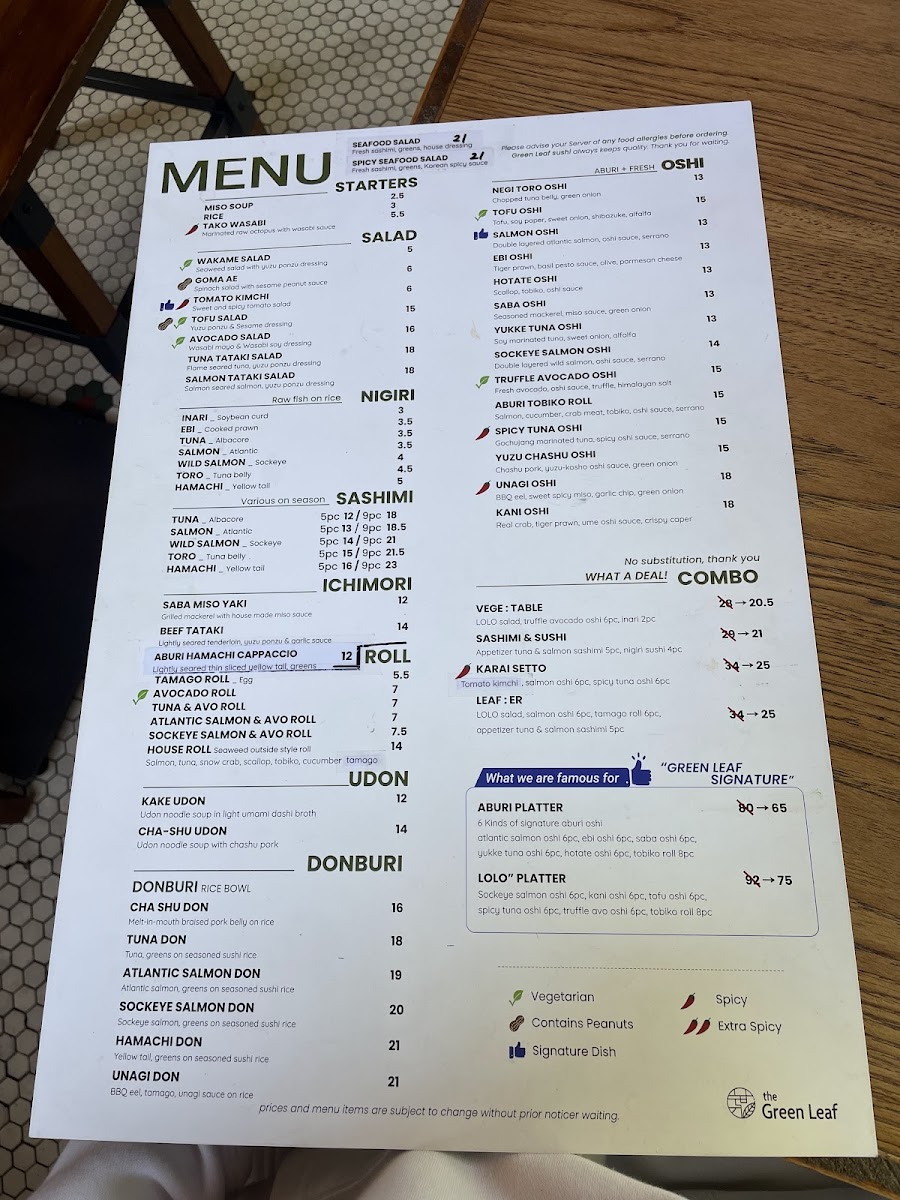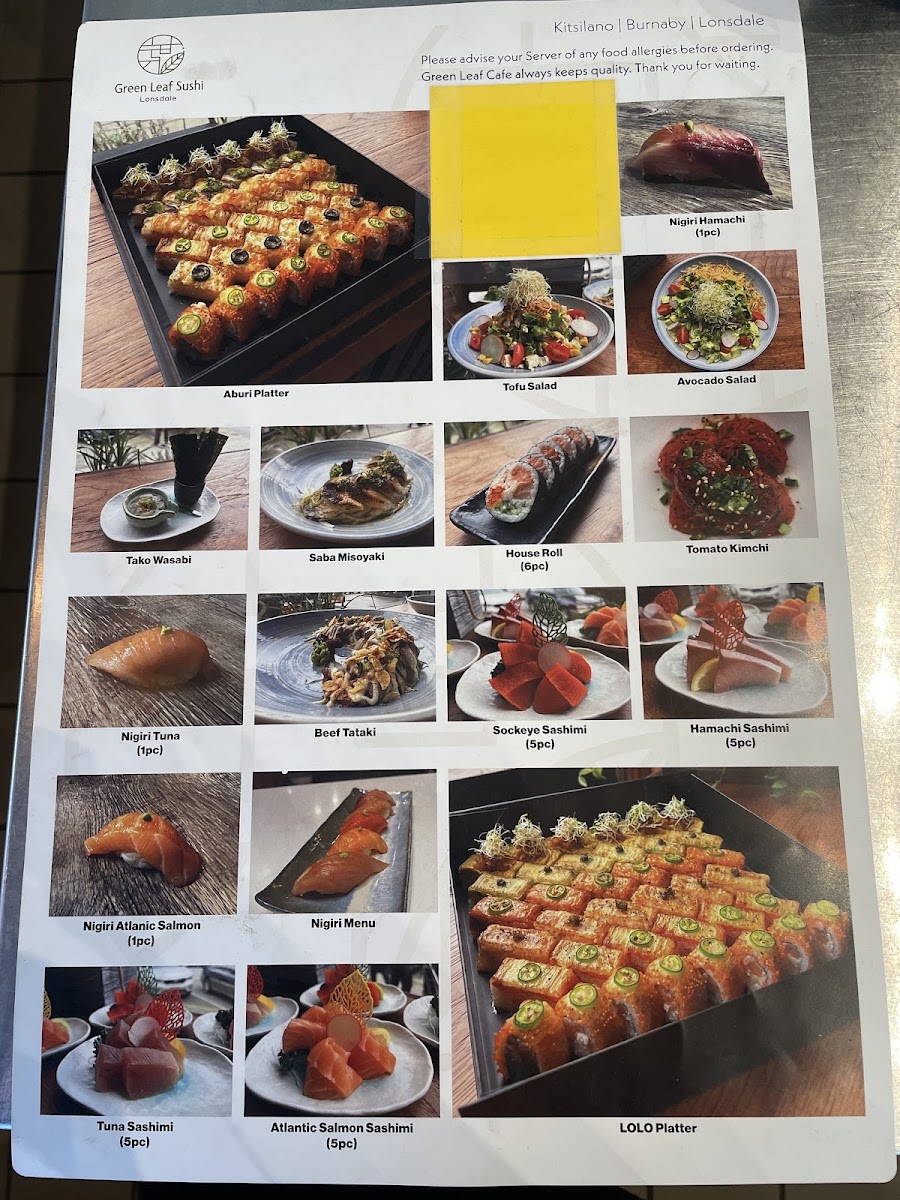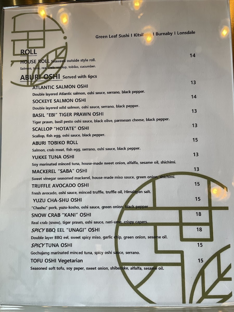 Green Leaf Sushi North Vancouver Menu
